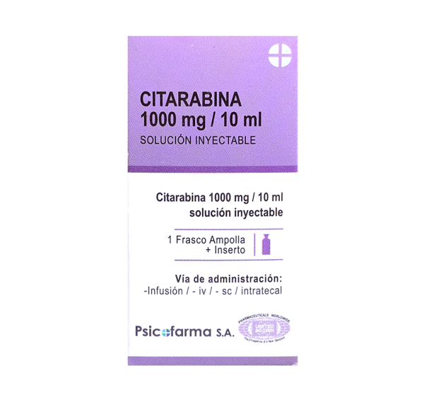 - Los niveles de citarabina en el líquido cefalorraquídeo son bajos en comparación con los niveles plasmáticos después de una única inyección intravenosa. Sin embargo, en un paciente en el que se examinaron los niveles cerebroespinales después de 2 horas de infusión intravenosa constante, los niveles se acercaron al 40% del nivel plasmático en estado estacionario.