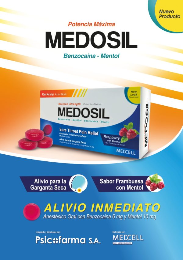 - Anestésico oral con Benzocaína 6 MG y Mentol 10MG.